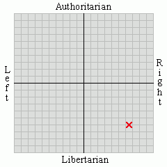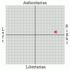 Note: These are fresh. I didn't have a pre-taken pic for this, so I had to retake the test so I could get you this. Actually, I do notice some changes: I've shifted noticably downward and left since I've last taken it. Surprising, since most of the changes I noticed on specific issues were leaning towards authoritarian...